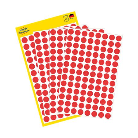 Etikett, 8 mm, kör, AVERY ZWECKFORM, piros, 416 etikett/csomag