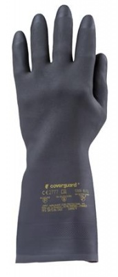 Vegyszerálló, mikroorganizmusok ellen védelemmel ellátott védőkesztyű.-anyaga: polikloroprén és természetes gumi anyag-pamutbolyhozott belső-0,72 mm vastag-hosszúság: 32 cm-csúszás ellen érdesített tenyér-szín: fekete-CE minősítés-méret: 10/XL
